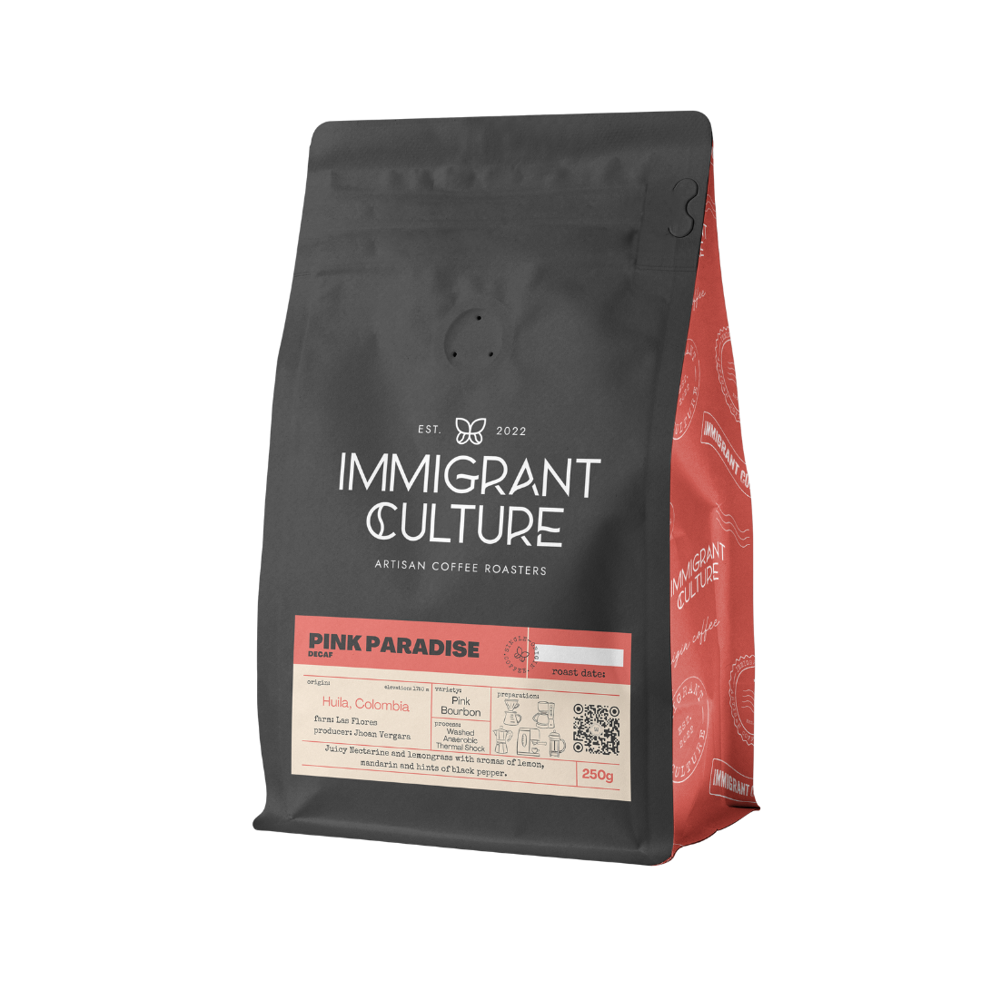 This exceptional decaf Pink Bourbon is crafted using cutting-edge microbiology and an anaerobic thermal-shock washed process. By isolating lively microorganisms during fermentation, this coffee develops a smooth, expressive, and well-structured profile. Whether brewed as espresso or cold brew, it consistently offers an outstanding flavor experience.